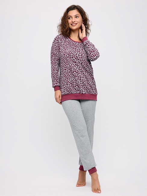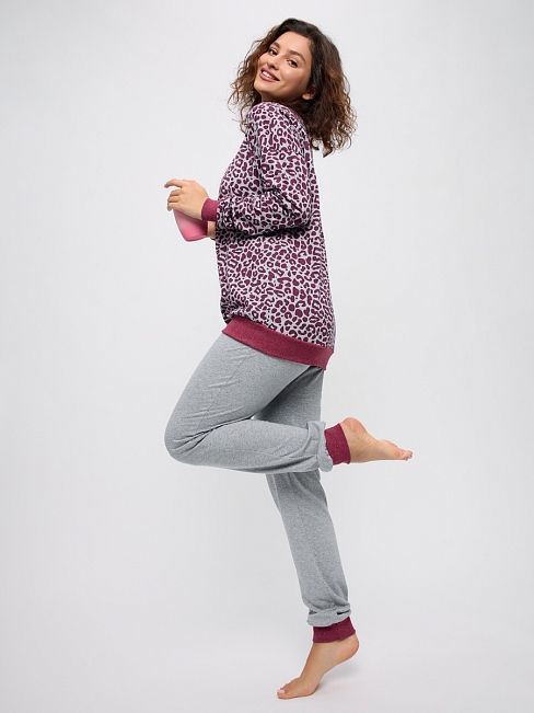 Пижама женская из джемпера и брюк из кулирки Олененок / Бордо из