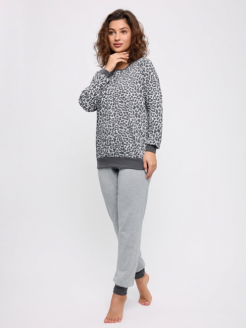 Пижама женская из джемпера и брюк из кулирки Олененок / Серый из
