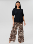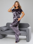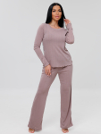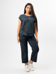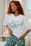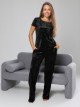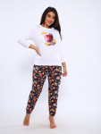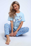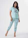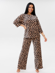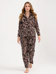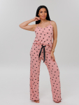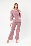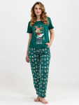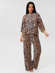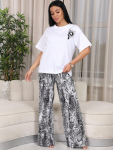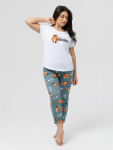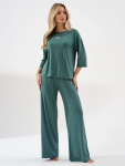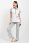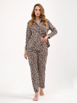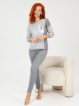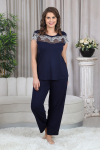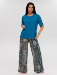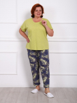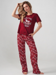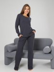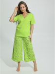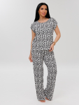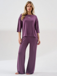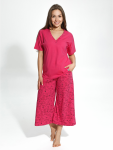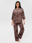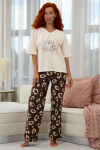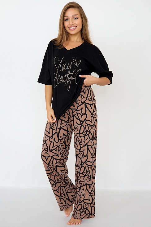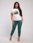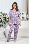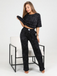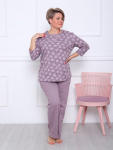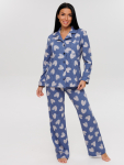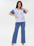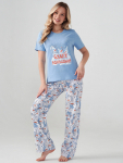 Стильная женская пижама с брюками из легкой хлопковой ткани.