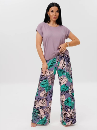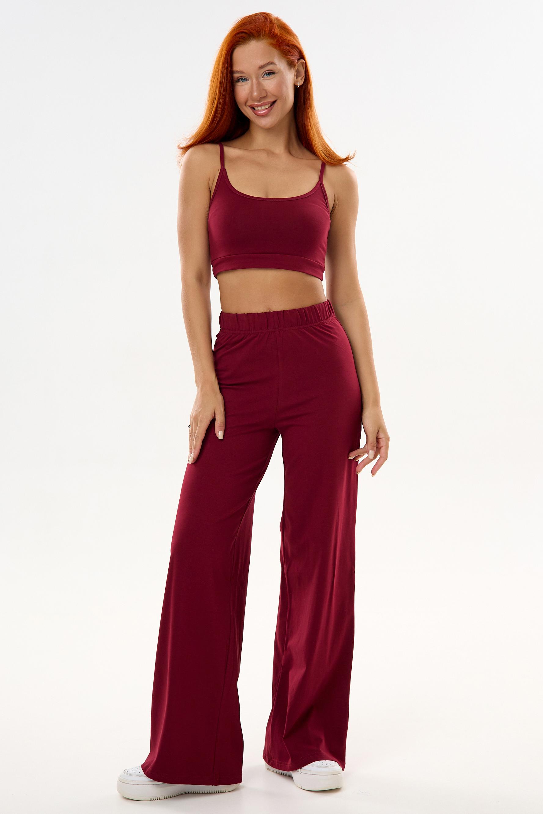Пижама женская Колибри К Арт. 10440 / Каберне отшивается из хлопковой ткани с добавлением лайкры. Женский костюм состоит из укороченного топа на тонких бретелях и свободных пижамных брюк.