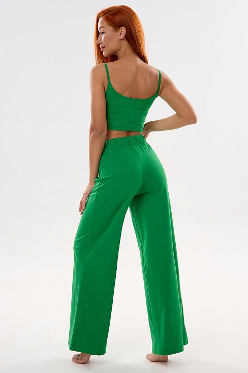 Пижама женская Колибри З Арт. 10445 / Зеленый отшивается из хлопковой ткани с добавлением лайкры. Женский костюм состоит из укороченного топа на тонких бретелях и свободных пижамных брюк.