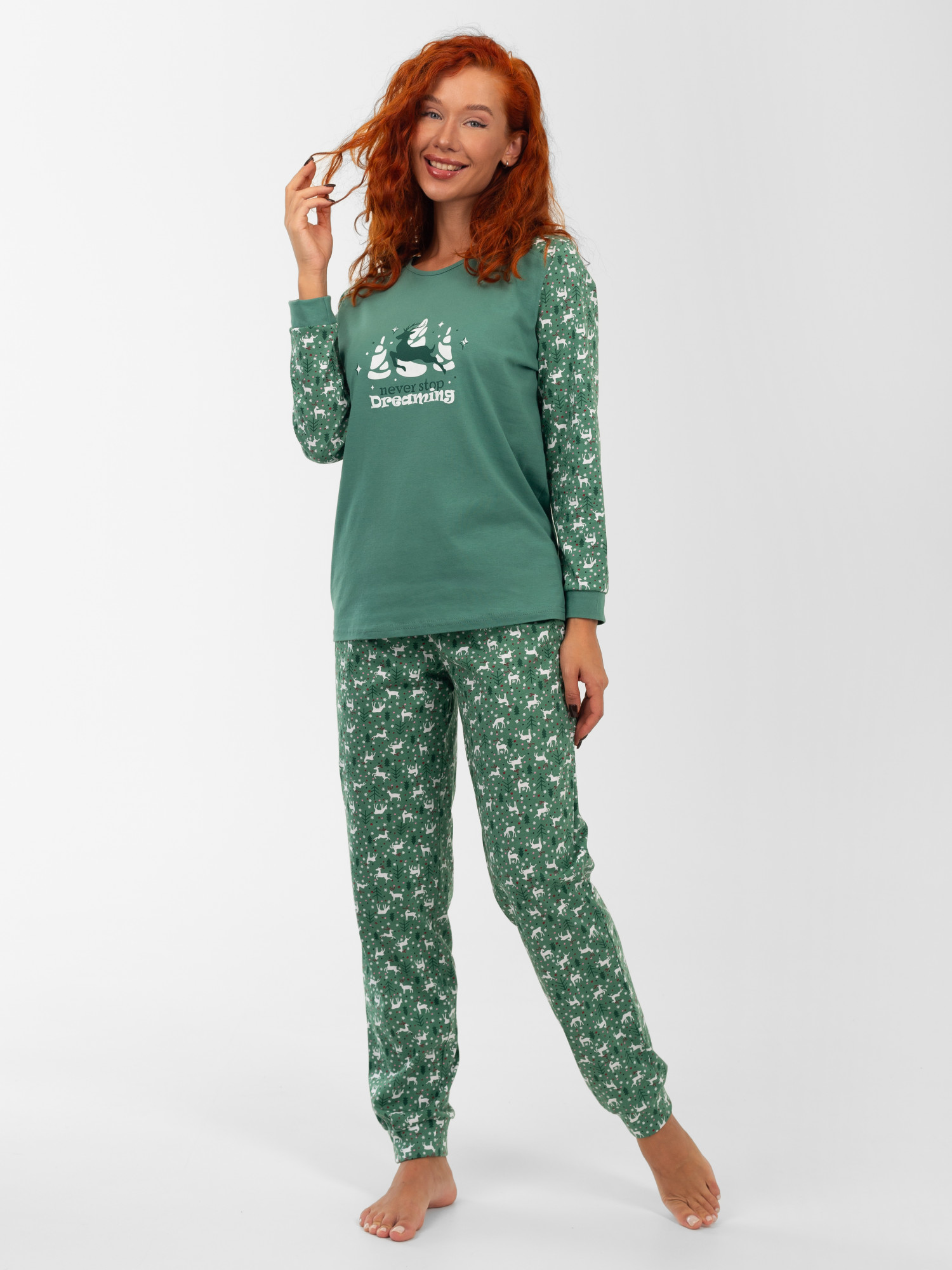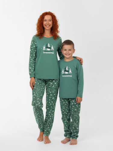 Пижама женская кулирка с брюками "ЗИМНИЙ ЛЕС" ЗЕЛЕНЬ