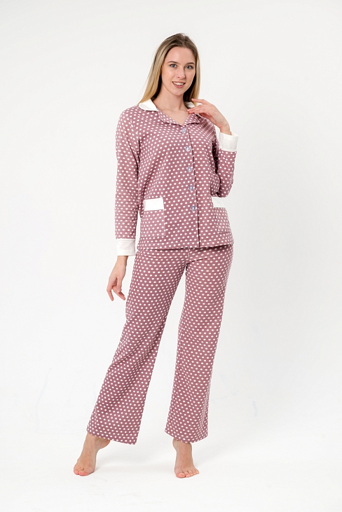 Пижама женская Салли / Горошек на кофе, экрю