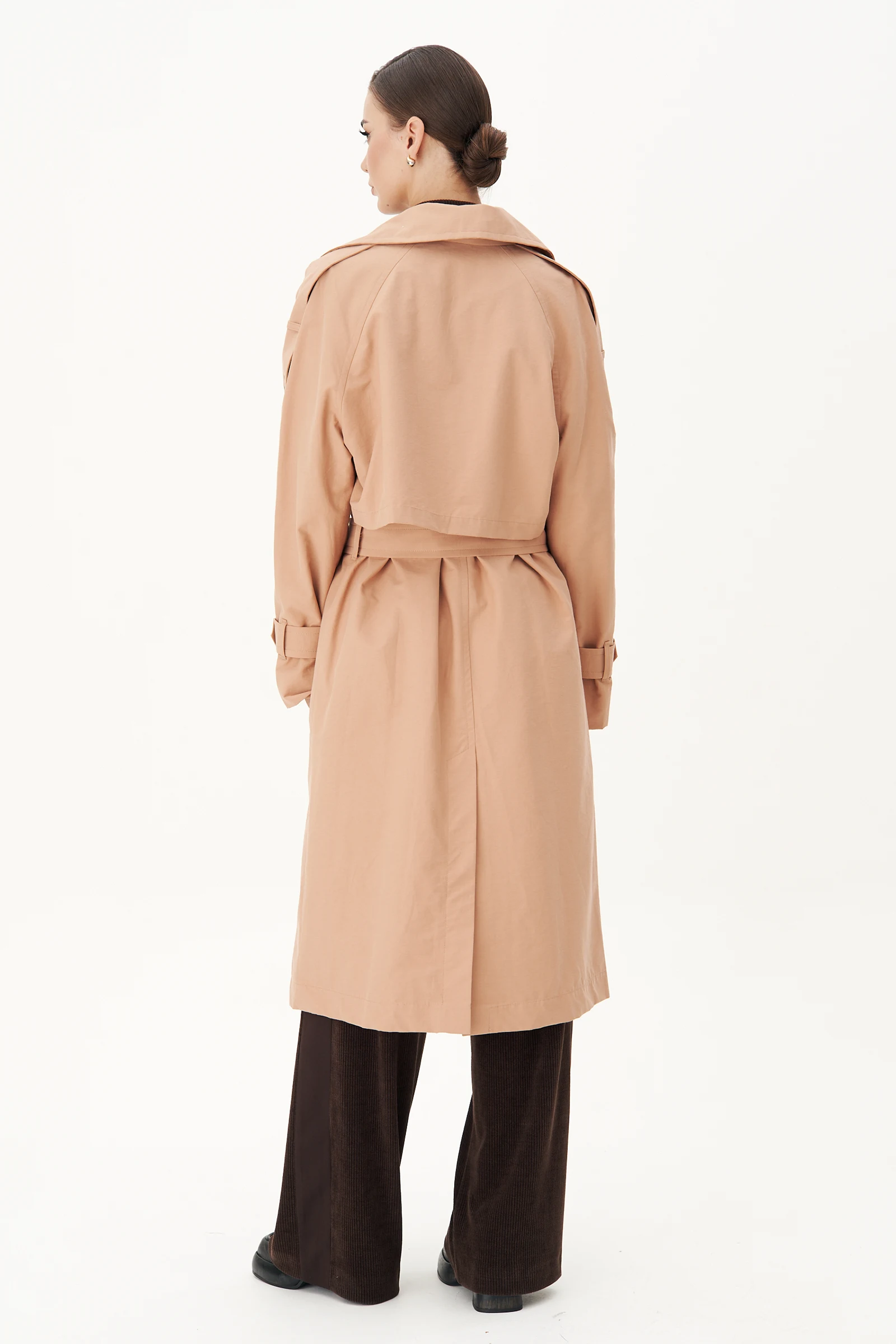 Модный плащ - это в первую очередь практичность и разнообразие. Стиль не теряет популярности весной 2024 года. Плащ со съёмным капюшоном. Одна деталь превращаетобычный плащ в ультрамодную новинку. Актуальная длина, прямой силуэт, смещенная застёжка на два ряда пуговиц.Покрой - реглан, рукава со шлёвками и патами в нижней и верхней части, на петлях и пуговицах. Карманы наклонные прорезные с широкими листочками и клапанами. Спинка с отлетной кокеткой и шлицей.Капюшон съёмный с боковыми частями и широким отлётом. Плащ дополнен широким съёмный поясом с отделочной пряжкой. Плащ на подкладке. Декор - эмблема на спинке.Длина изделия по спинке около 105 см. Длина рукава около 61 см.