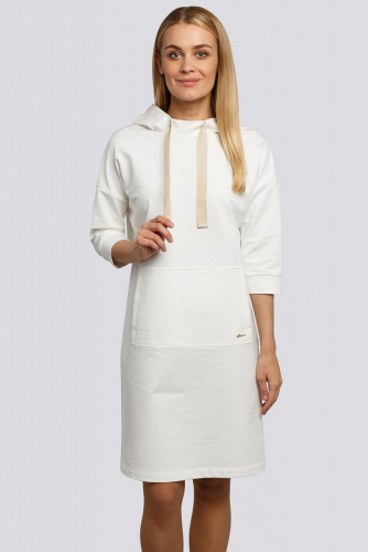 Платье из трикотажного полотна представляет собой очень удобную, комфортную в носке модель. Фасон достаточно лаконичен, прямого силуэта. Платье дополняют элементы спортивного стиля - капюшон с декоративной тесьмой, накладной карман. Модель абсолютно универсальна, не обтягивает фигуру, с рукавом средней длины с манжетой. Широкая цветовая гамма делает модель всесезонной. Состав трикотажа: 75% хлопок, 20% полиэстер, 5% спандекс.