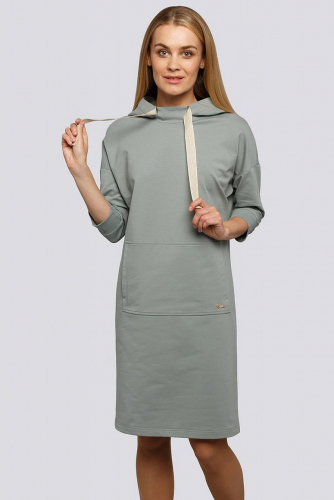 Платье из трикотажного полотна представляет собой очень удобную, комфортную в носке модель. Фасон достаточно лаконичен, прямого силуэта. Платье дополняют элементы спортивного стиля - капюшон с декоративной тесьмой, накладной карман. Модель абсолютно универсальна, не обтягивает фигуру, с рукавом средней длины с манжетой. Широкая цветовая гамма делает модель всесезонной. Состав трикотажа: 75% хлопок, 20% полиэстер, 5% спандекс.