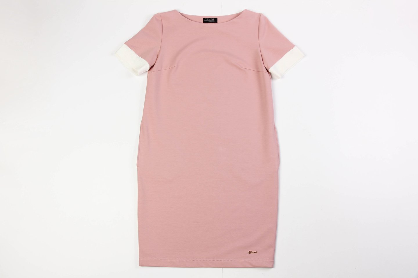 В нашем каталоге появились чудесные трикотажные платья в лучших фасонах и длине. Платье легкого овального силуэта элегантной длины с карманами в боковых швах, что делает это изделие максимально комфортным в носке для обладательницы фигуры любого типа. Контрастный манжет из ткани с люрексом-изюминка данной модели. Спокойная цветовая гамма напоминает о долгожданном летнем сезоне. Форма горловины-«лодочка». Состав трикотажа: 75% хлопок, 20% полиэстер, 5% спандекс.
