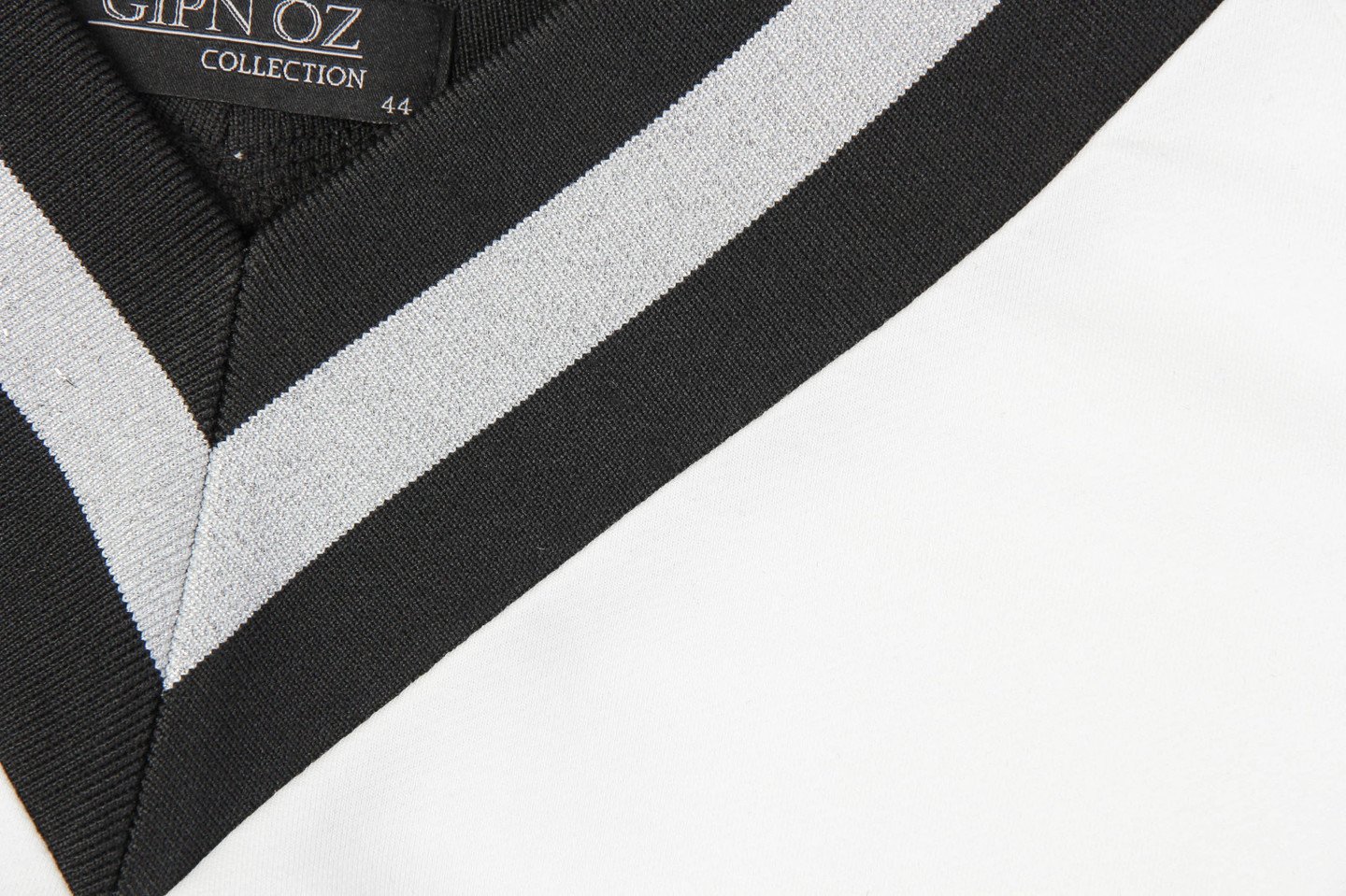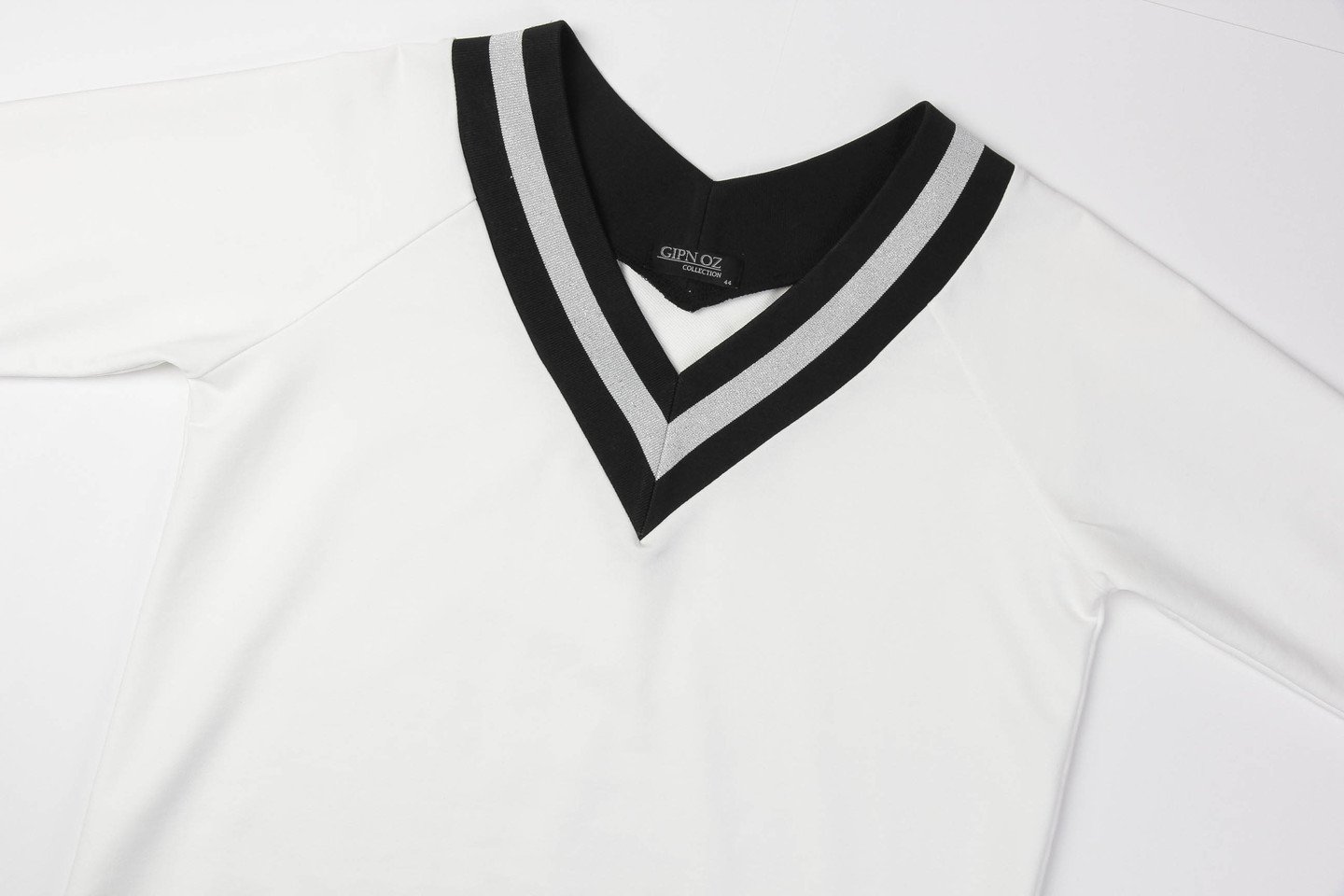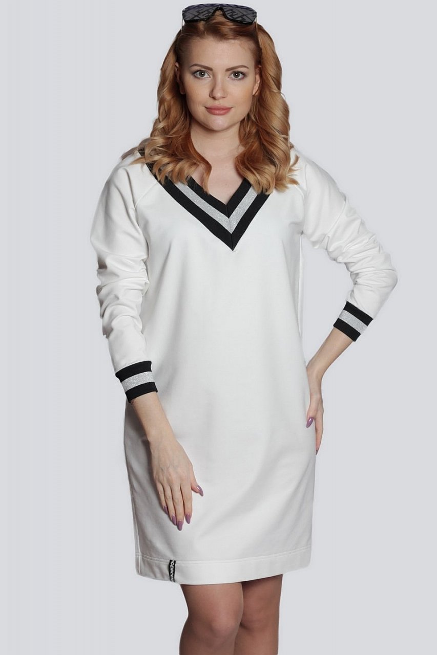 Модное платье в стиле спорт-шик должно быть в гардеробе каждой женщины. Помимо того, что такая одежда очень удобна, она еще универсальна, поэтому уместна в любой обстановке. Всего несколько правильно подобранных аксессуаров и спортивная одежда превращается в наряд для свиданий. Состав трикотажа: 75% хлопок, 20% полиэстер, 5% спандекс. белый