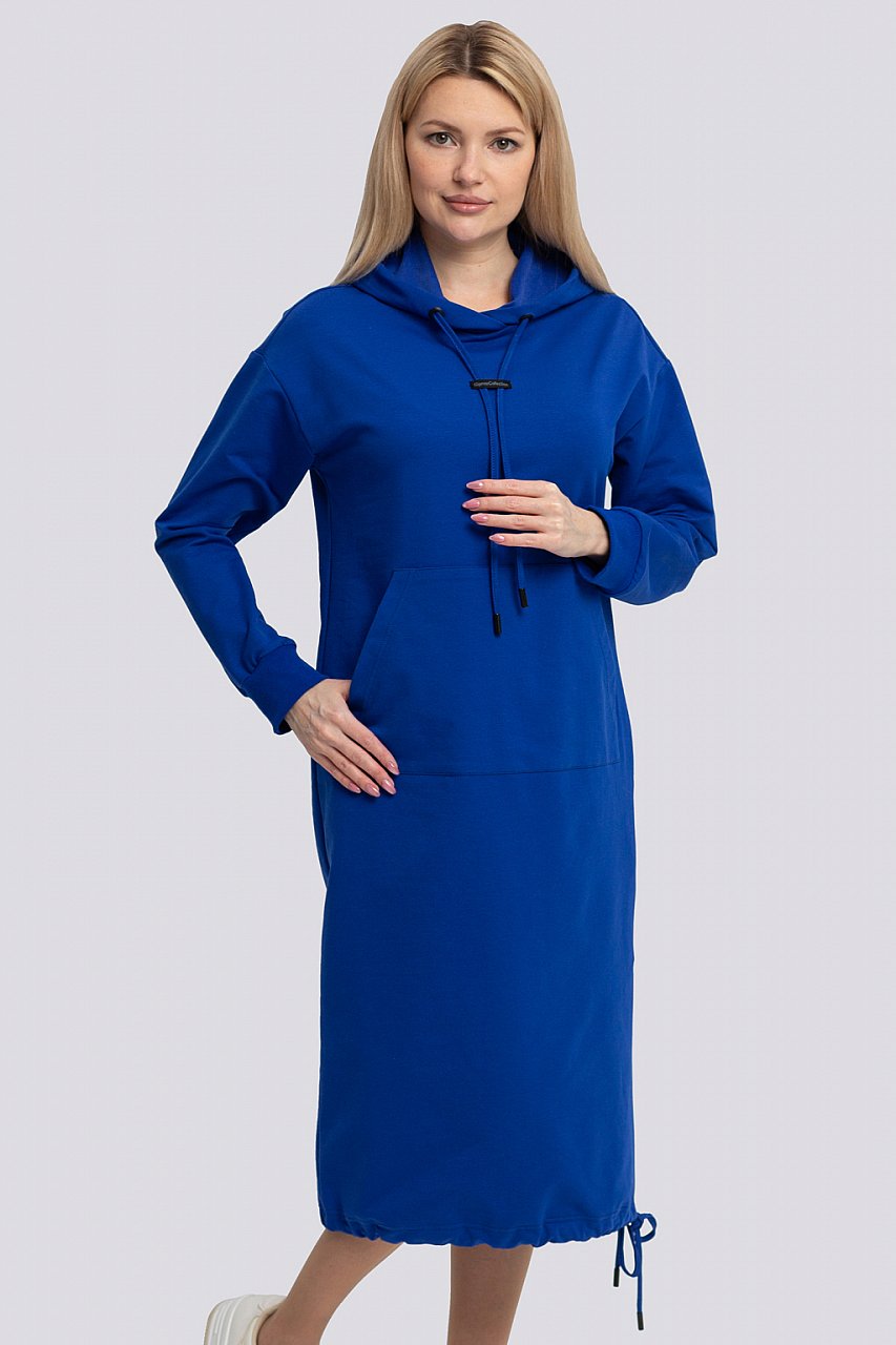 регулируемый шнурок. По левому боку разрез. Состав трикотажа: 75% хлопок, 20% полиэстер, 5% спандекс. ярко-синий