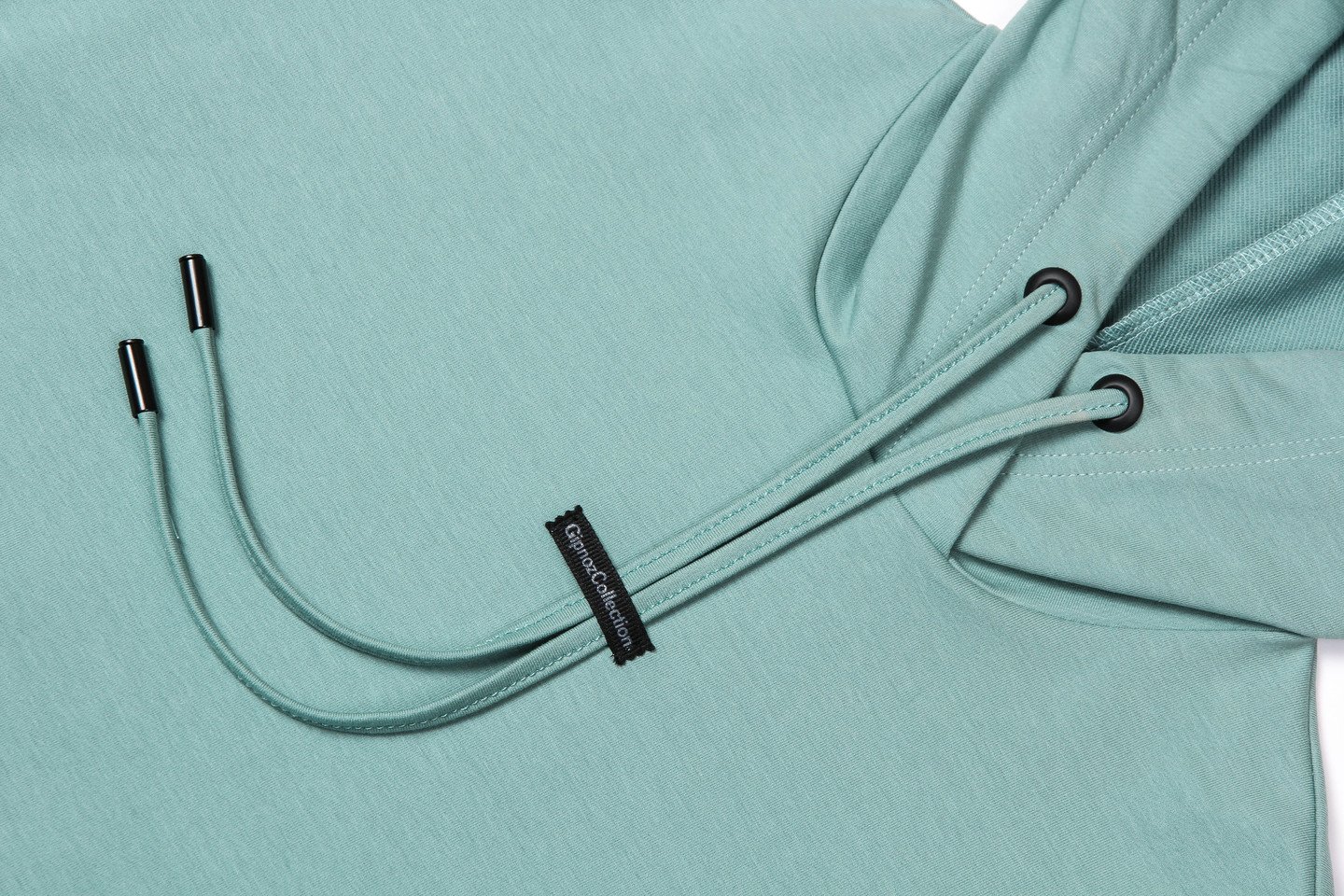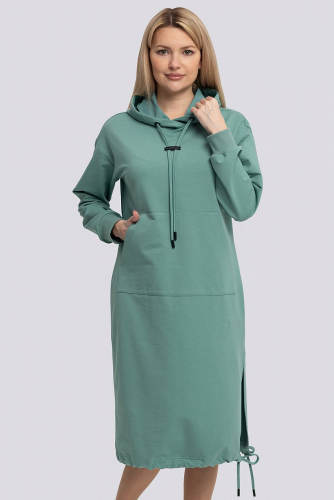 регулируемый шнурок. По левому боку разрез. Состав трикотажа: 75% хлопок, 20% полиэстер, 5% спандекс. зеленая мята