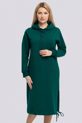 регулируемый шнурок. По левому боку разрез. Состав трикотажа: 75% хлопок, 20% полиэстер, 5% спандекс. малахит