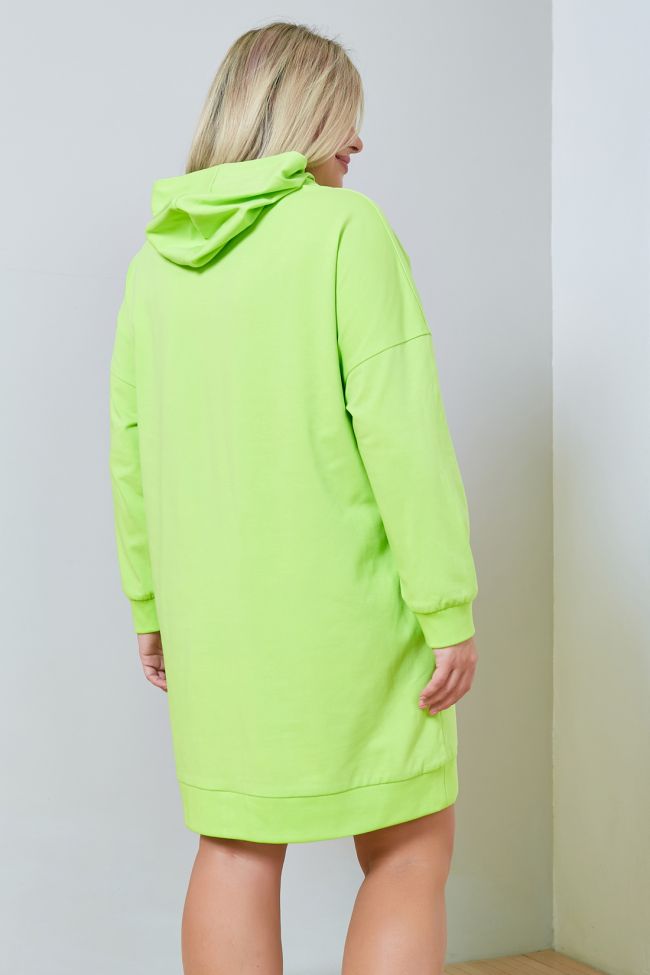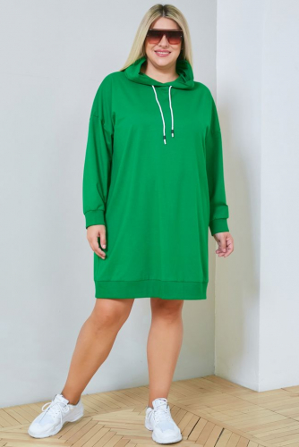 светло-зеленый Комфортное платье в спортивном стиле прямого силуэта, из плотного однотонного трикотажа. Круглый вырез горловины оформлен капюшоном. Рукава длинные втачные на спущенной линии плеча. Низ изделия и рукава оформлены притачной широкой манжетой. В боковых швах удобные карманы. Низ ровный. Отличный вариант в тренде нынешней моды для ценителей комфорта.