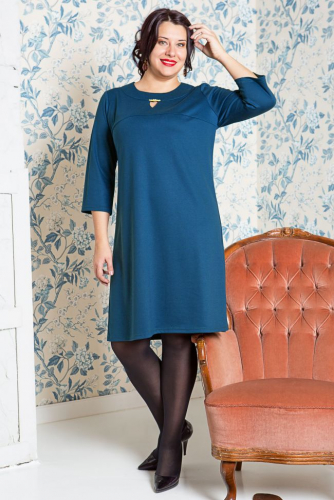 голубой Стильное платье полуприлегающего силуэта из трикотажного полотна однотонной расцветки. Удобные втачные рукава длиной ¾. По всей длине спинки эффектный замок. По переду горловины элегантный вырез капелька, полоненный украшением. Прекрасный выбор на каждый день!