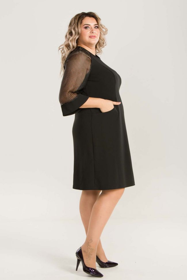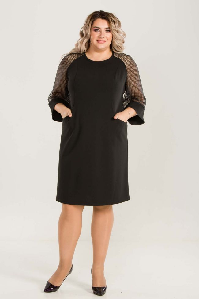 черный Женственное платье полуприлегающего силуэта из плотного трикотажного полотна. Круглый вырез горловины оставляет место под украшения. Рукава реглан из органзы с притачной манжетой по низу создадут праздничный образ. Рельефные швы по переду обеспечат отличную посадку по фигуре. На уровне бедер расположены прорезные карманы для удобства. Замечательный выбор для визита в гости.