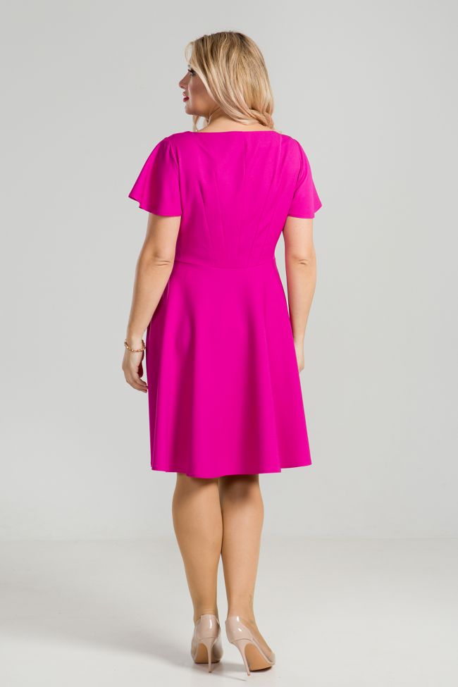 розовый Платье приталенного силуэта из однотонной плательной вискозы, яркой расцветки.Модель с круглым вырезом горловины.Расклешенные короткие втачные рукава  "крылышки" придают модели воздушности.Прилегающий лиф подчеркнут двойными вытачками.Сбоку расположена потайная застежка-молния.Низ платья расклешенный, с мягкими складками.Линия талии подчеркнута изящным ремешком из эко-кожи.Цвет ремешка, Вы выбираете любой, из представленных к данному платью.Женственный силуэт, элегантная длина придают модели романтичное настроение.  Замечательный выбор для похода в кино или свидания.