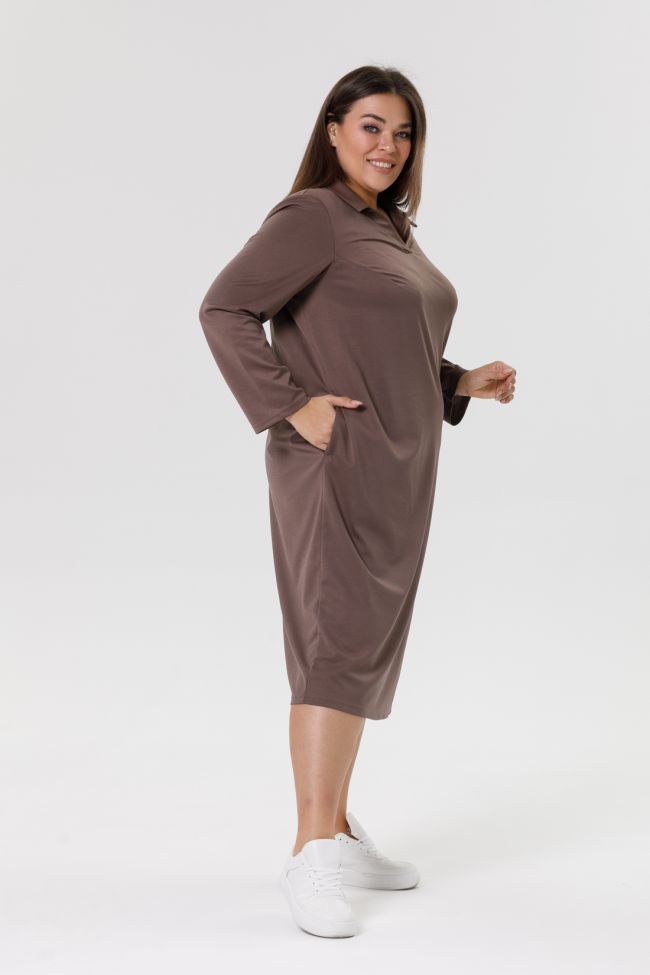 коричневый Комфортное платье-поло полуприлегающего силуэта из трикотажного полотна "лакоста". Горловина оформлена удобным V-образным вырезом с воротником типа "Поло" который позволяет создать неповторимый образ. Перед и спинка цельные. Рукава втачные, длинные. Платье идеальный выбор для тех, кто ценит комфорт и практичность. Легкая и удобная модель станет незаменимым элементом вашего гардероба.