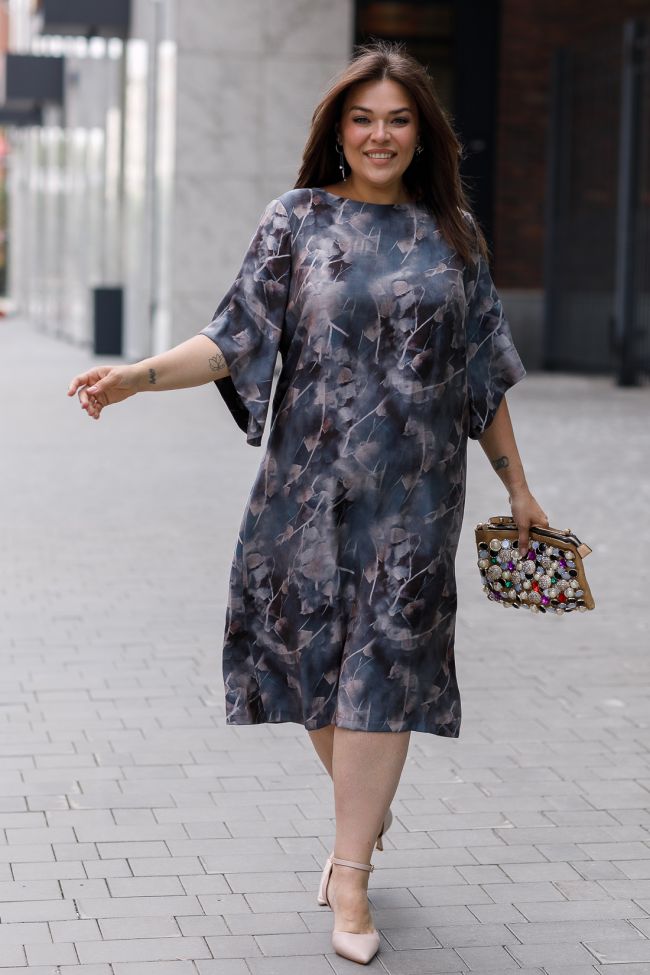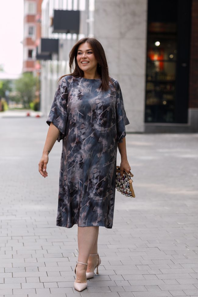 серый Стильное платье из плательной ткани Тенсел. Модель А-образного силуэта длиной чуть ниже колена. Горловина платья в форме лодочки, обработана обтачкой. Прилегание по фигуре в области груди за счет вытачек. Рукава втачные расклешенные с фигурным низом, длиной 3/4 добавляют нотку романтики и легкости. Низ платья прямой. Отличный вариант для торжественных мероприятий.