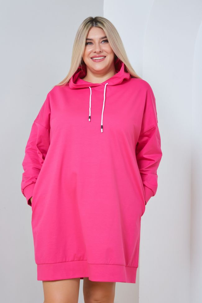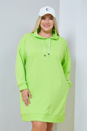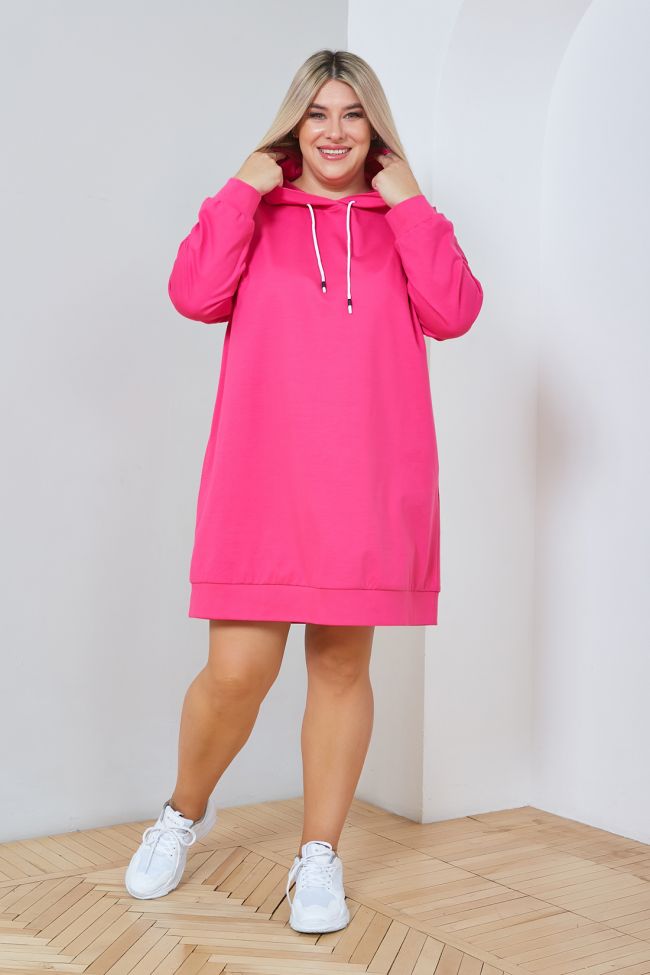 розовый Комфортное платье в спортивном стиле прямого силуэта, из плотного однотонного трикотажа. Круглый вырез горловины оформлен капюшоном. Рукава длинные втачные на спущенной линии плеча. Низ изделия и рукава оформлены притачной широкой манжетой. В боковых швах удобные карманы. Низ ровный. Отличный вариант в тренде нынешней моды для ценителей комфорта.
