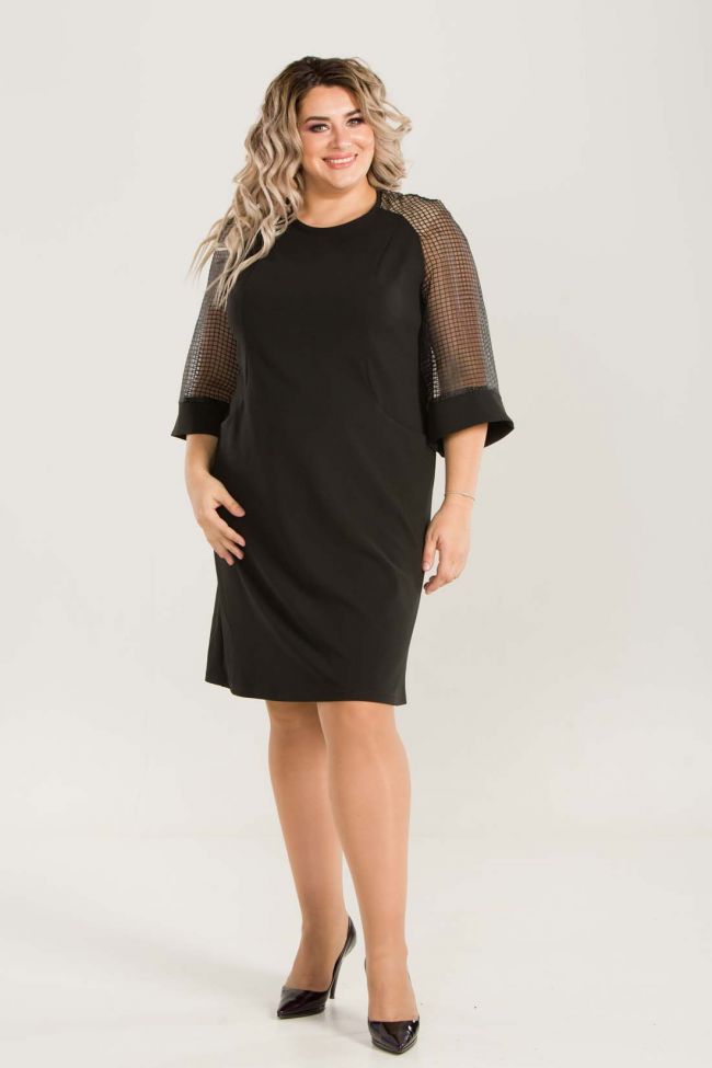 черный Женственное платье полуприлегающего силуэта из плотного трикотажного полотна. Круглый вырез горловины оставляет место под украшения. Рукава реглан из органзы с притачной манжетой по низу создадут праздничный образ. Рельефные швы по переду обеспечат отличную посадку по фигуре. На уровне бедер расположены прорезные карманы для удобства. Замечательный выбор для визита в гости.