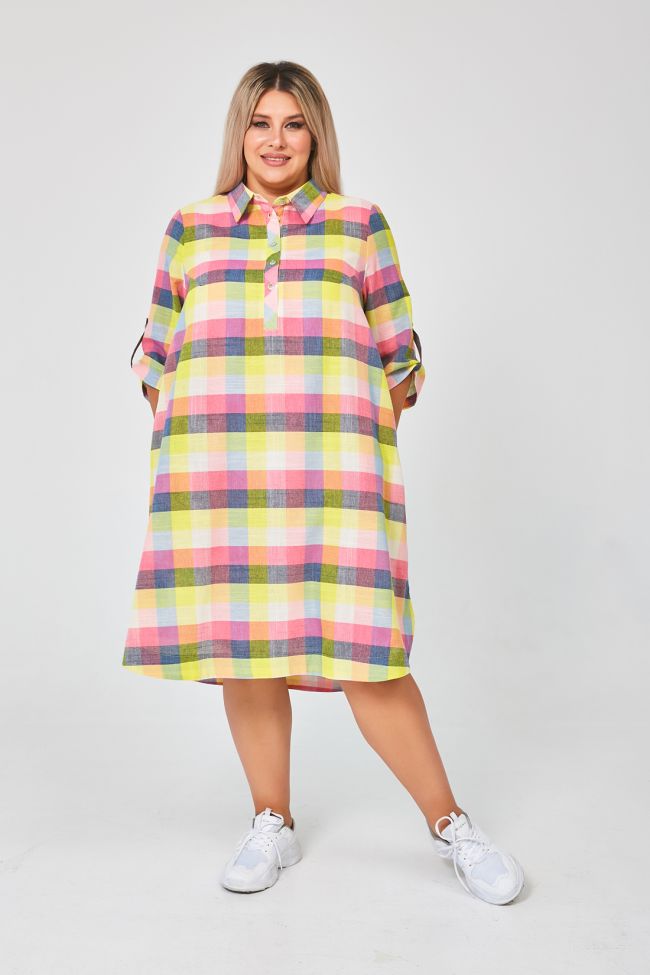 желтый Стильное платье-рубашка свободного силуэта, по центру переда застежка на петли-пуговицы. Низ ассиметричной длины с притачной внутренней обтачкой. Карман в боковом шве. Втачные рукава с подворотами на застежке средней длины. Платье-рубашка подойдет для девушек с любым типом фигуры. Отличный вариант для будней.
