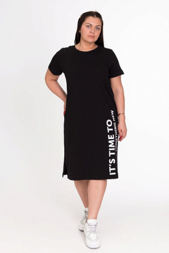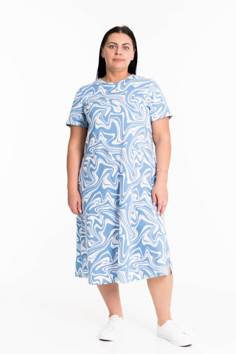 Платье из х/б полотна. По бокам разрезы, карманы в боковых швах, горловина обработана бейкой из основного полотна.