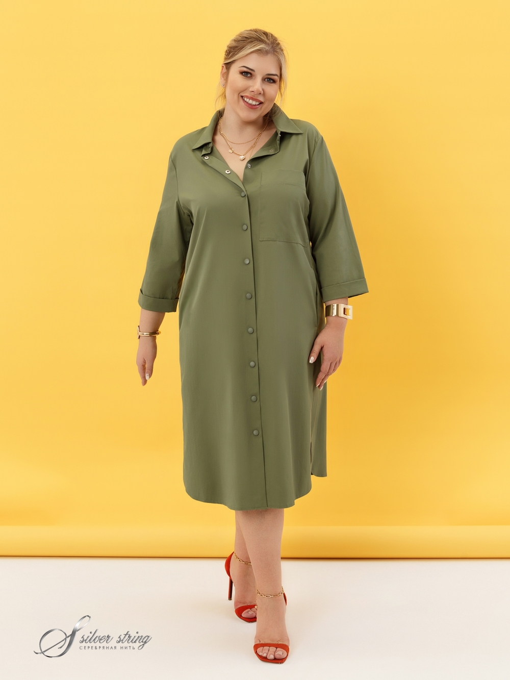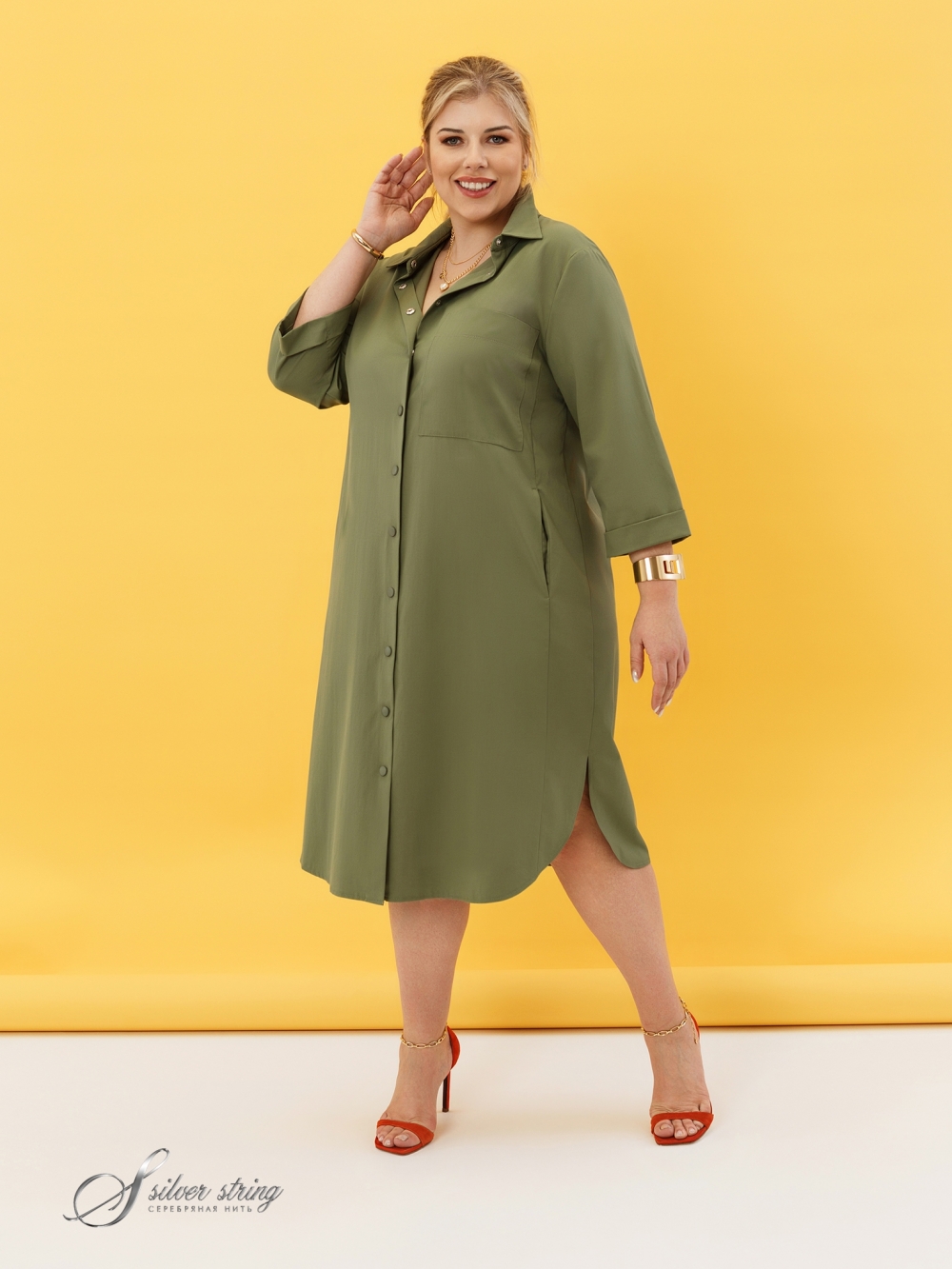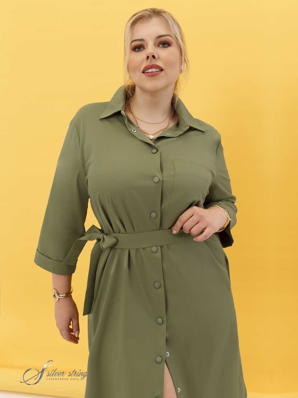 Стильное платье-рубашка прямого силуэта, длиной до середины икры, выполнено из натуральной смесовой ткани с эластаном. Модель с рубашечным воротником на стойке. Изделие распашное до низа, с застежкой на кнопки в цвет ткани и карманами в рельефных швах полочки. Рукав втачной, длиной до локтя, понизу оформлен отворотом. На правой стороне полочки расположен нагрудный накладной карман. В боковых швах обработаны разрезы скругленной формы. Модель комплектуется съемным поясом. Лето – это самая благодатная пора для платьев. Все располагает к тому, чтобы найти то платье, которое может занять главное место в вашем гардеробе.
