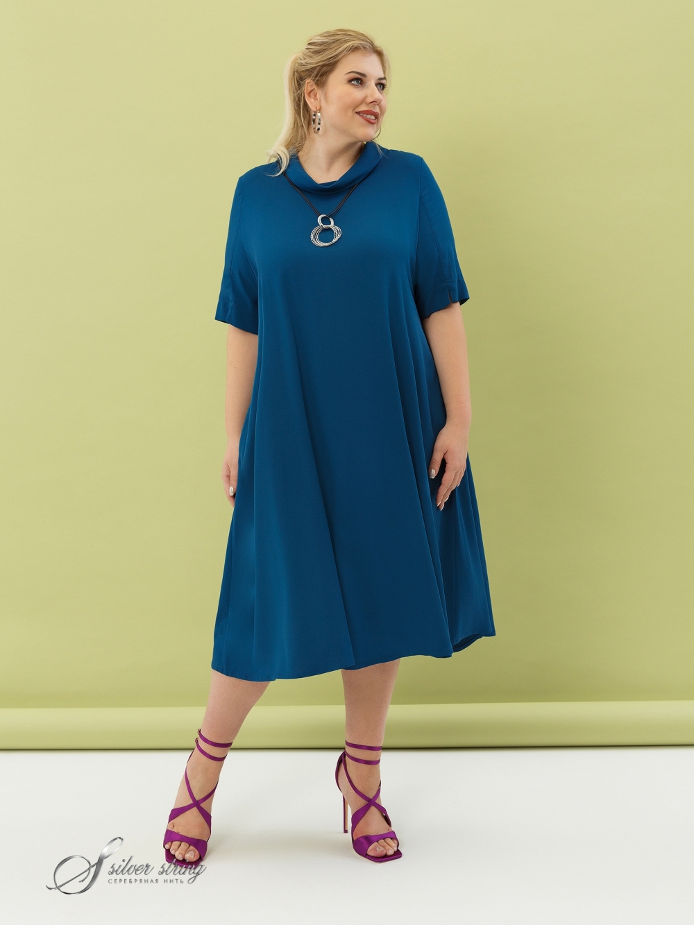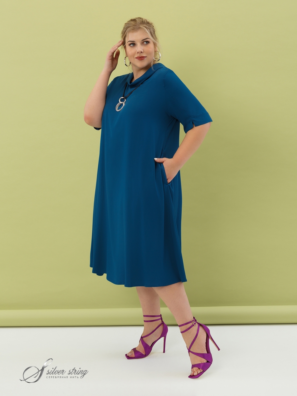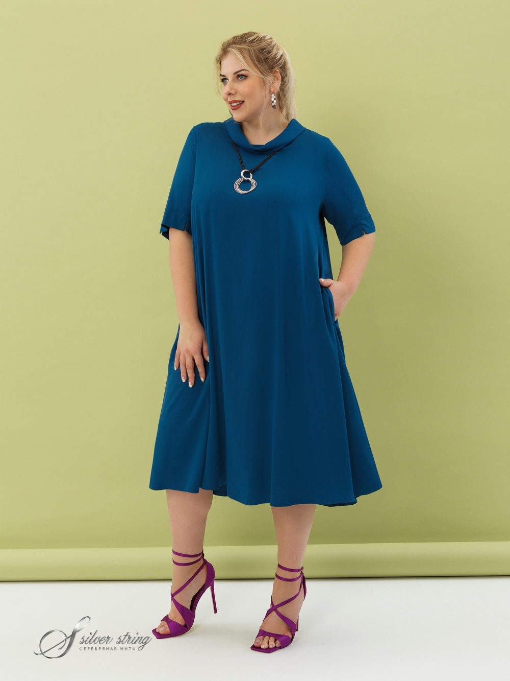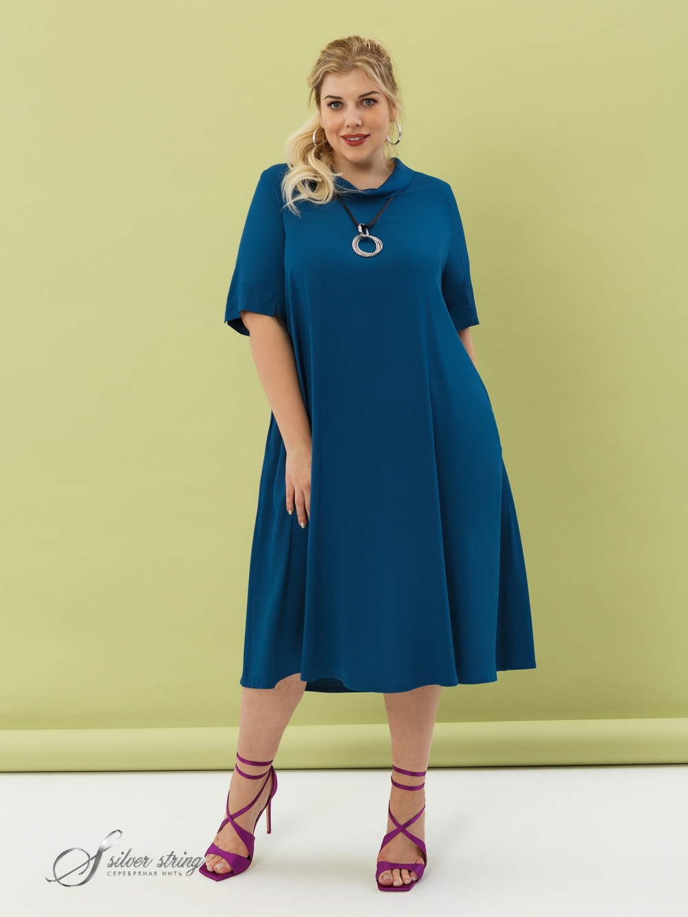 Эффектное платье А-образного силуэта, длиной за колено, выполнено из гладкокрашеной ткани с высоким содержанием хлопка. Рукав втачной, длиной до локтя. По низу рукава обработаны два небольших разреза. Округлая линия горловины оформлена мягким воротником-хомутиком. В боковых швах расположены удобные карманы. Женственный стиль сегодня очень актуален. А это значит, что на первый план выходят летящие силуэты. Фасон платья прекрасно скроет возможные недостатки фигуры и поможет Вам выглядеть всегда модно и стильно.