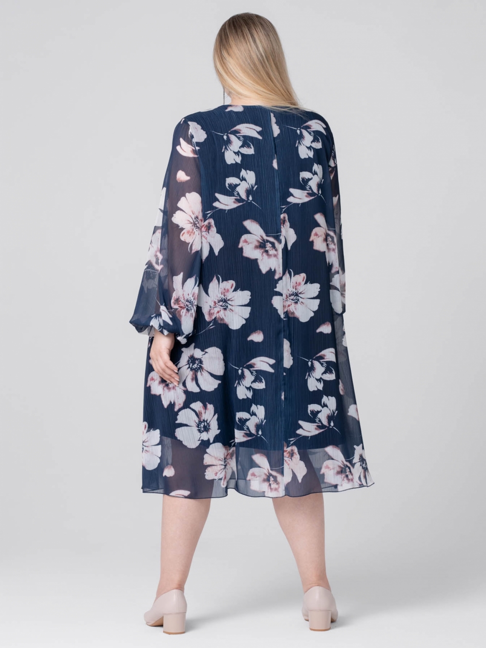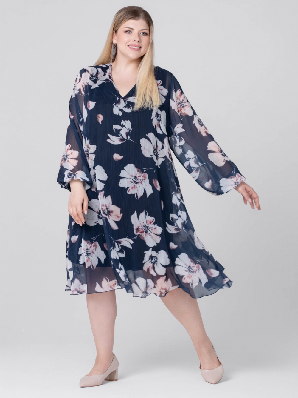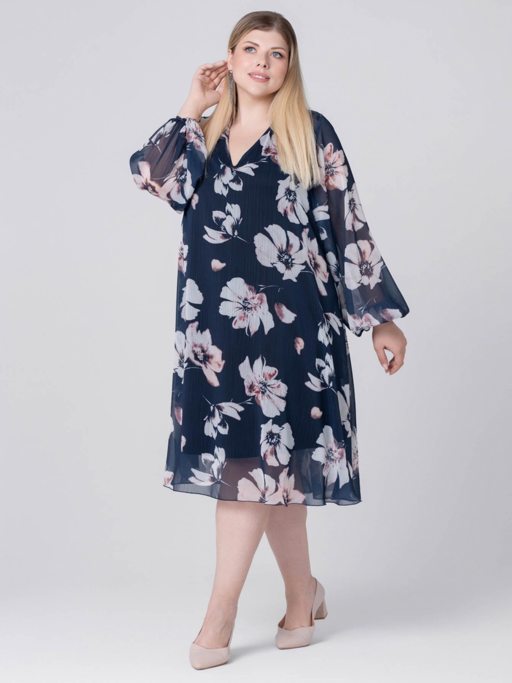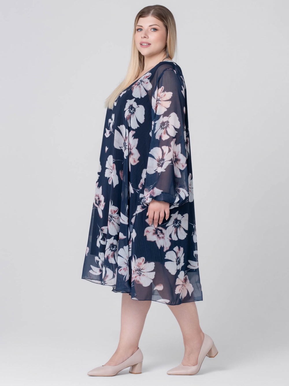 Стильное платье А-образного силуэта, длиной до середины икры, выполнено из вискозного шифона с «крэш» - эффектом. Длинный, объемный рукав по низу присобран на тонкий рулик, с застежкой на миниатюрную пуговицу. Горловина У-образной формы. Изделие многослойное. Функцию подкладки выполняет маленькое трикотажное платье-чехол. Женственный стиль сегодня очень актуален. А это значит, что на первый план выходят летящие силуэты. Фасон платья прекрасно скроет возможные недостатки фигуры и поможет Вам выглядеть всегда модно и стильно.