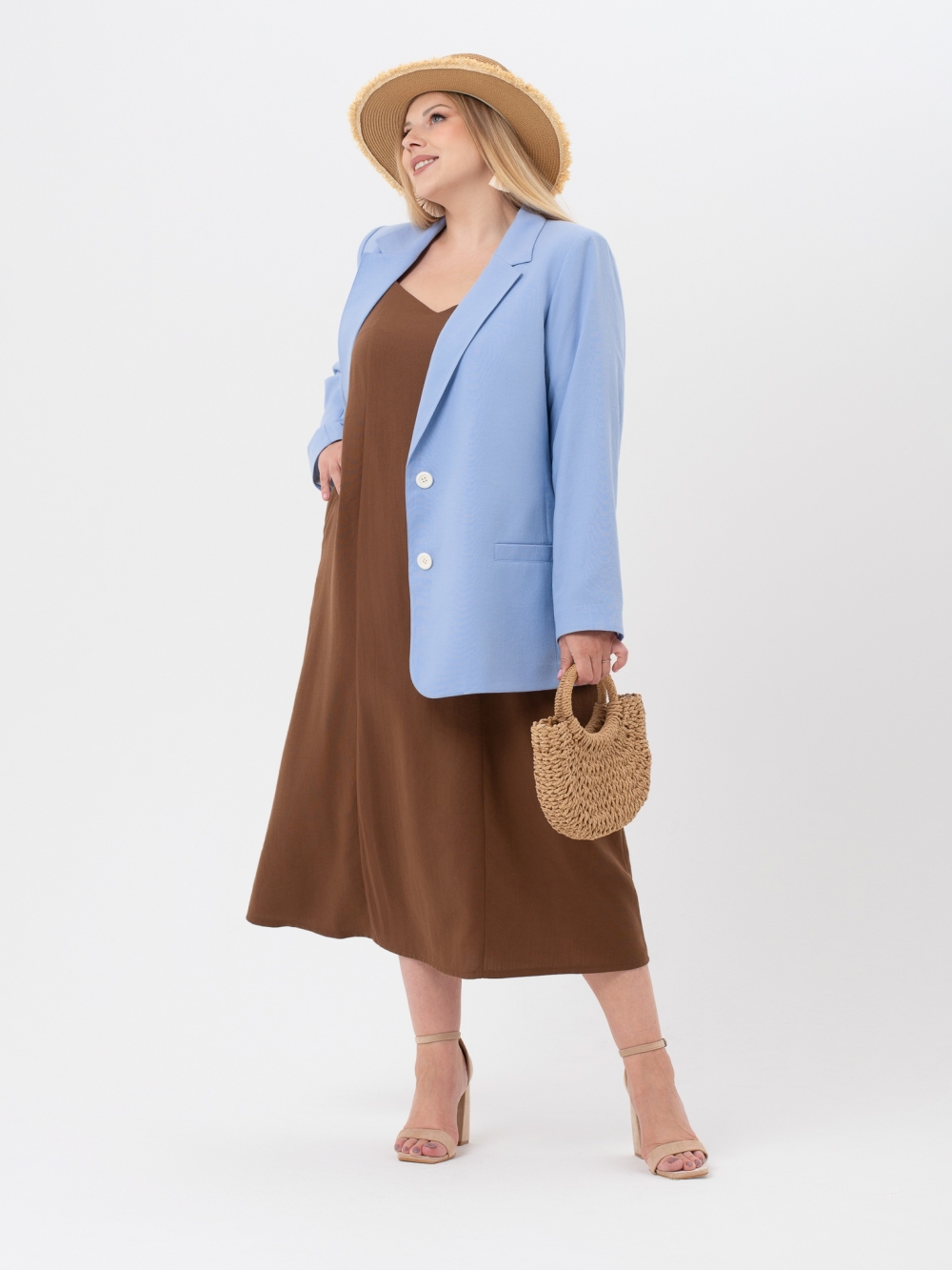 Современное платье-топ выполнено из смесовой ткани с высоким содержанием натурального волокна. Модель без рукавов, на тонких бретелях, слегка расширено к низу. В боковых швах обработаны карманы. Коричнево-шоколадный цвет, в котором выполнено изделие, как нельзя лучше подходит для базового гардероба. Шоколадный цвет выглядит дорого и благородно. Он идеально сочетается с серыми, голубыми и светло-карими глазами. Оттенки шоколада к лицу жгучим и знойным брюнеткам, а в одежде отлично «работают» с темно-синим и темно-голубым тоном. Стильный образ получится если изделие надеть поверх футболки, а если его комбинировать с жакетом, то получится элегантный комплект для выхода в театр или в кафе с друзьями.