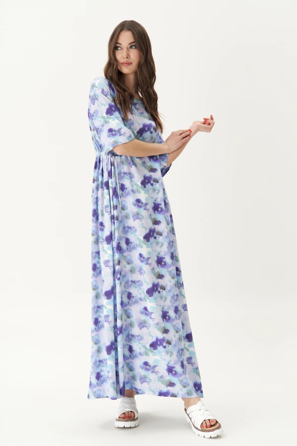 Длинное, невероятно комфортное летнее платье, это то, что так необходимо знойным летним днём. Оно придает образу нотки романтизма и женственности. Свободный А-силуэт, рубашечный покрой, круглая горловина, рукав расширенный в области оката с эластичным шнуром и фиксаторами в области боковых швов, переходящая со спинки, частично на полочку, выше линии талии. Кулиса 100% вискоза с набивным 3принтом. Мягко струится и дарит настроение лёгкости и свежести.Длина платья около 95см.Длина рукава с плечом около 40 см.