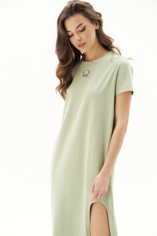 Один из самых комфортных, расслабленных и неформальных видов платьев - платье-футболка.Они легко интегрируются в повседневный кэжуал и подходят практически всем. Свободный, упрямлённый силуэт, втачной покрой, длинна миди, короткий комфортный рукав и изюминка, вносящая дисбаланс в эти простые формы - это нехарактерный, ассиметричный вырез-арка по переду платья.Длина платья около 117см.Длина рукава около 24 см.