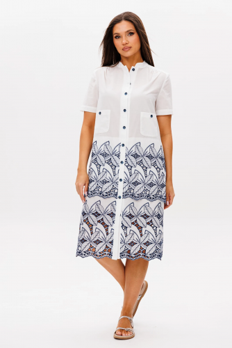 Платье из батиста, очень тонкое и практически не ощутимо ношении, в приоритете простота и удобство. Такой вариант всегда в моде. Белое платье с контрастной вышивкой и интересным кроем.