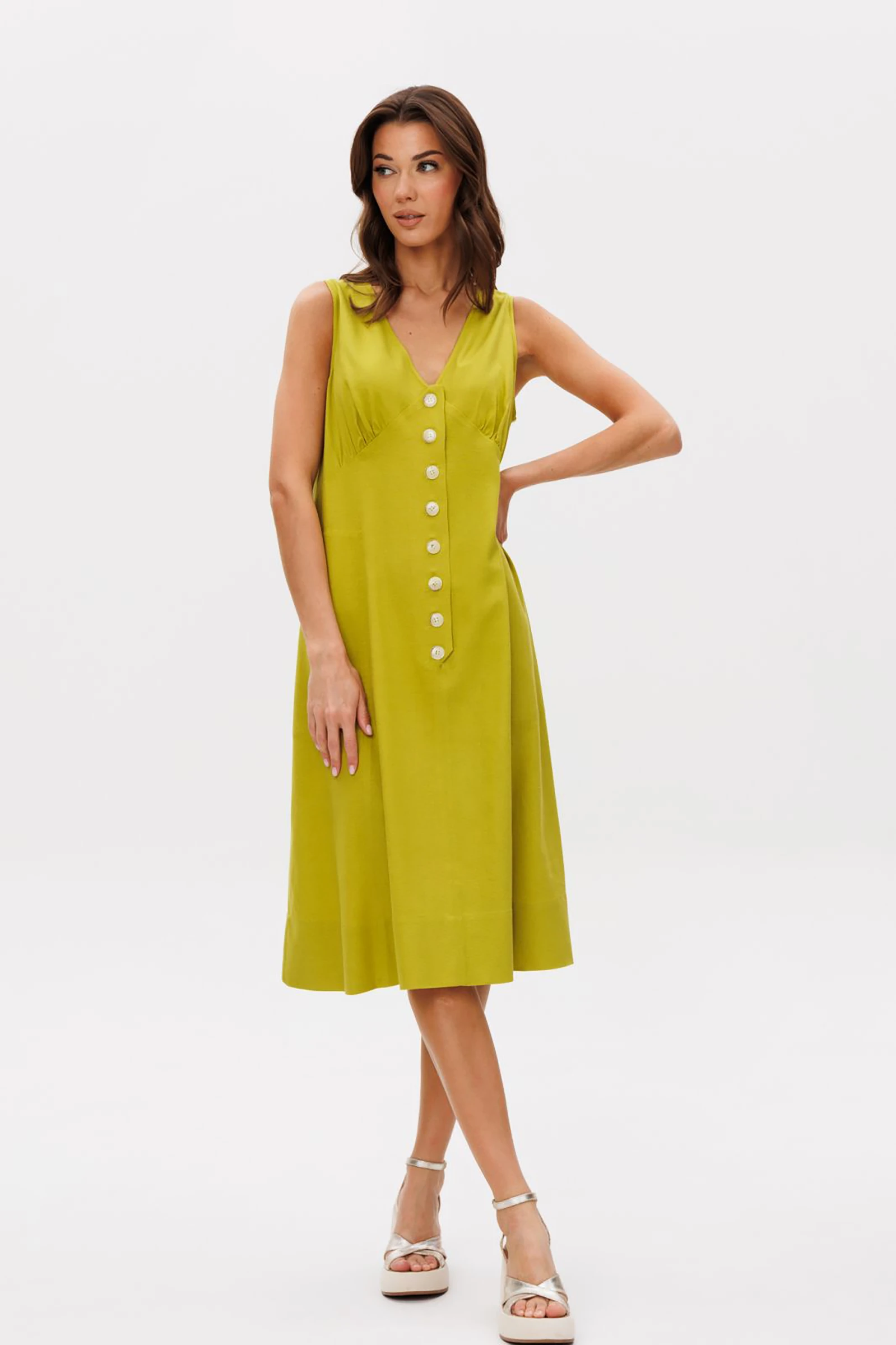 Лен-неотъемлемый спутник для всех, кто планирует проводить лето в городе и не хочет умереть от жары. Самая популярная модель платья изо льна-вариация А-силуэта в длине миди. Благородное без дополнительных усилий по стилизации-за это отвечает само полотно и тщательно подобранная фурнитура.