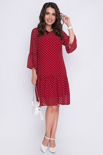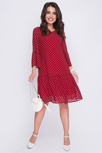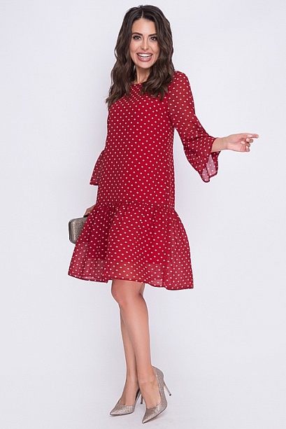 Платье из шифона свободного силуэта на подкладе из креп шифона с притачными оборками по низу и по рукавам.