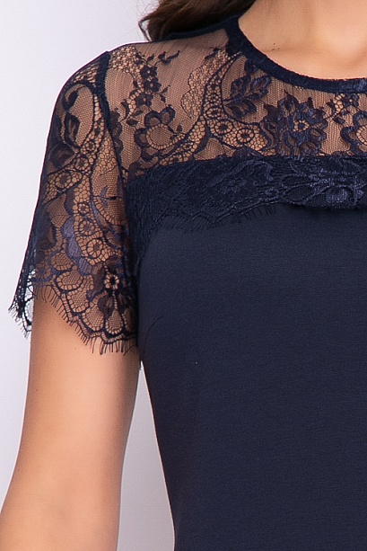 Платье из трикотажа джерси.Кокетка и рукава из кружевного полотна.