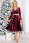 Платье из бархата,отрезное по линии талии с втачным поясом,по переду юбки разрез.