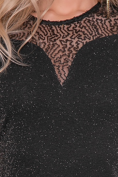 Платье из трикотажного полотна с блеском с фигурной кокеткой из сетки с пайетками.В среднем шве спинки застежка молния.