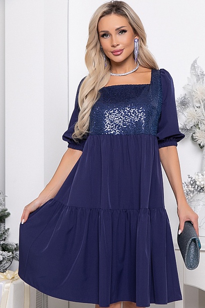 Платье из текстильного полотна с двумя ярусами оборок и пайетками по лифу.
