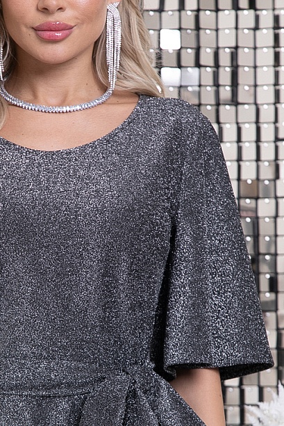 * Нарядное платье из трикотажного полотна с блеском,отрезное по линии талии.Пояс из основной ткани в комплекте.
