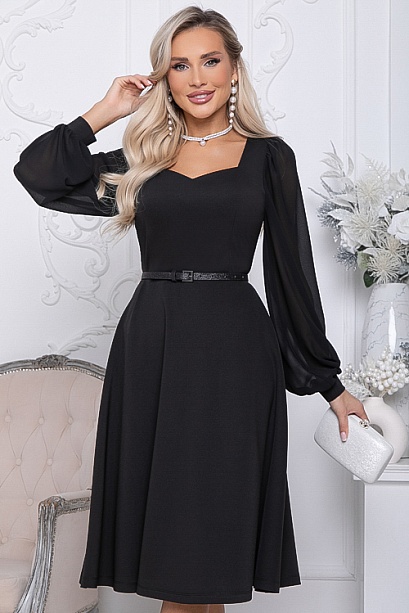 * Нарядное  платье из качественного  трикотажного полотна(ткань производство Турция) полуприлегающего силуэта,отрезное по лини талии  с расклешенной юбкой.Рукава втачные из полупрозрачного шифона посажены на трикотажные манжеты.Изюминка платья  эффектный,фигурный вырез горловины.Ремень в комплект не входит.