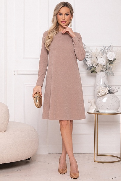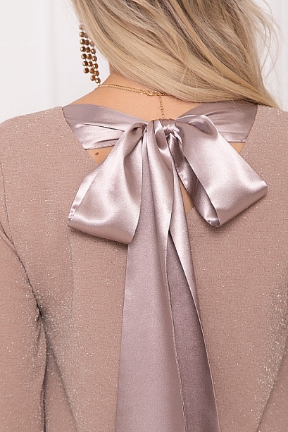 * Платье А-образного силуэта из трикотажного полотна с легким люрексом.Изюминка платья-вырез по спинке с завязывающимся бантом из шелка.