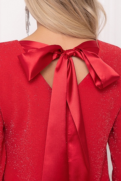 * Платье А-образного силуэта из трикотажного полотна с легким люрексом.Изюминка платья-вырез по спинке с завязывающимся бантом из шелка.