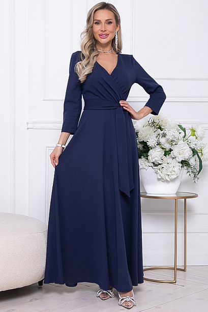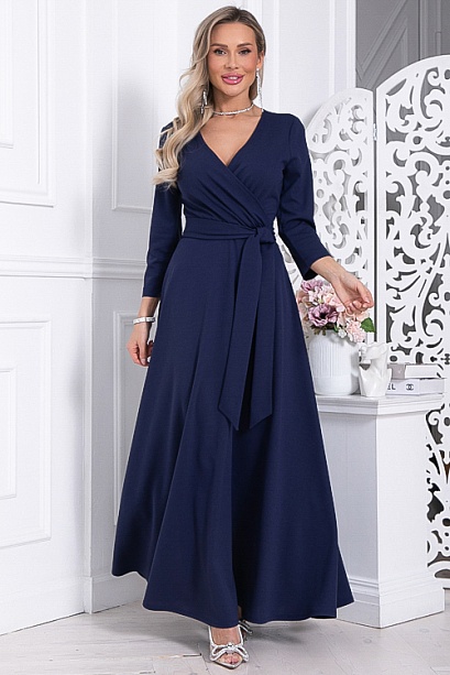 * Нарядное элегантное платье из трикотажного полотна,отрезное по лини талии с расклешенной юбкой.Лиф платья с полным запахом,задрапированным по линии талии.Пояс из  основной ткани в комплекте.