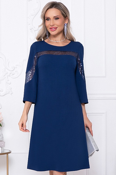 * Платье из трикотажного полотна А-образного силуэта,по рукавам и полочке вставки из сетки с пайетками.