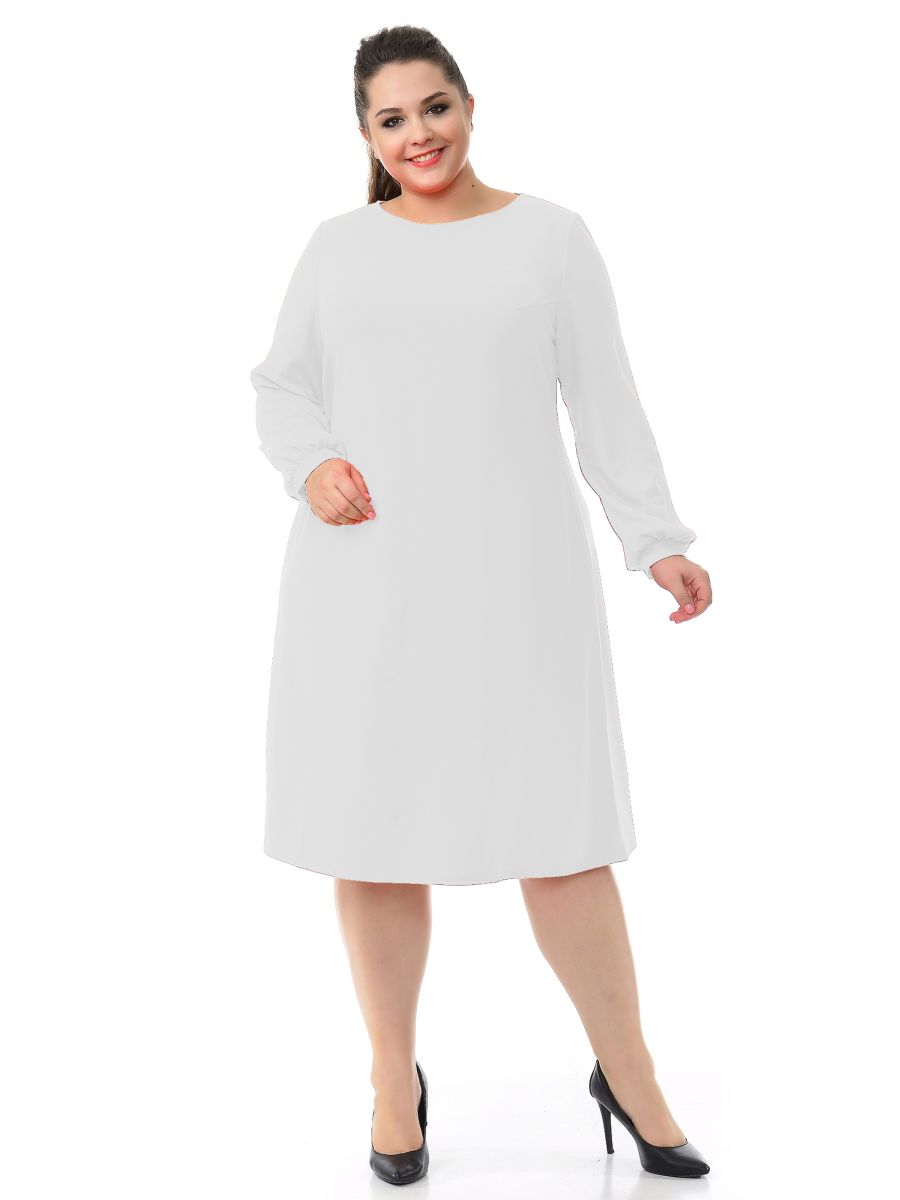 Array Платье А-силуэта из крепа с эластаном. Вырез горловины округлый. Рукав длинный, по низу легкая сборка, на манжете.