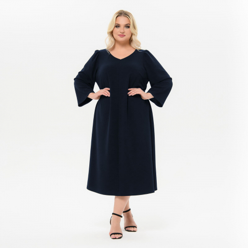 Центральный шов по переду и V-вырез зрительно вытягивают силуэт.