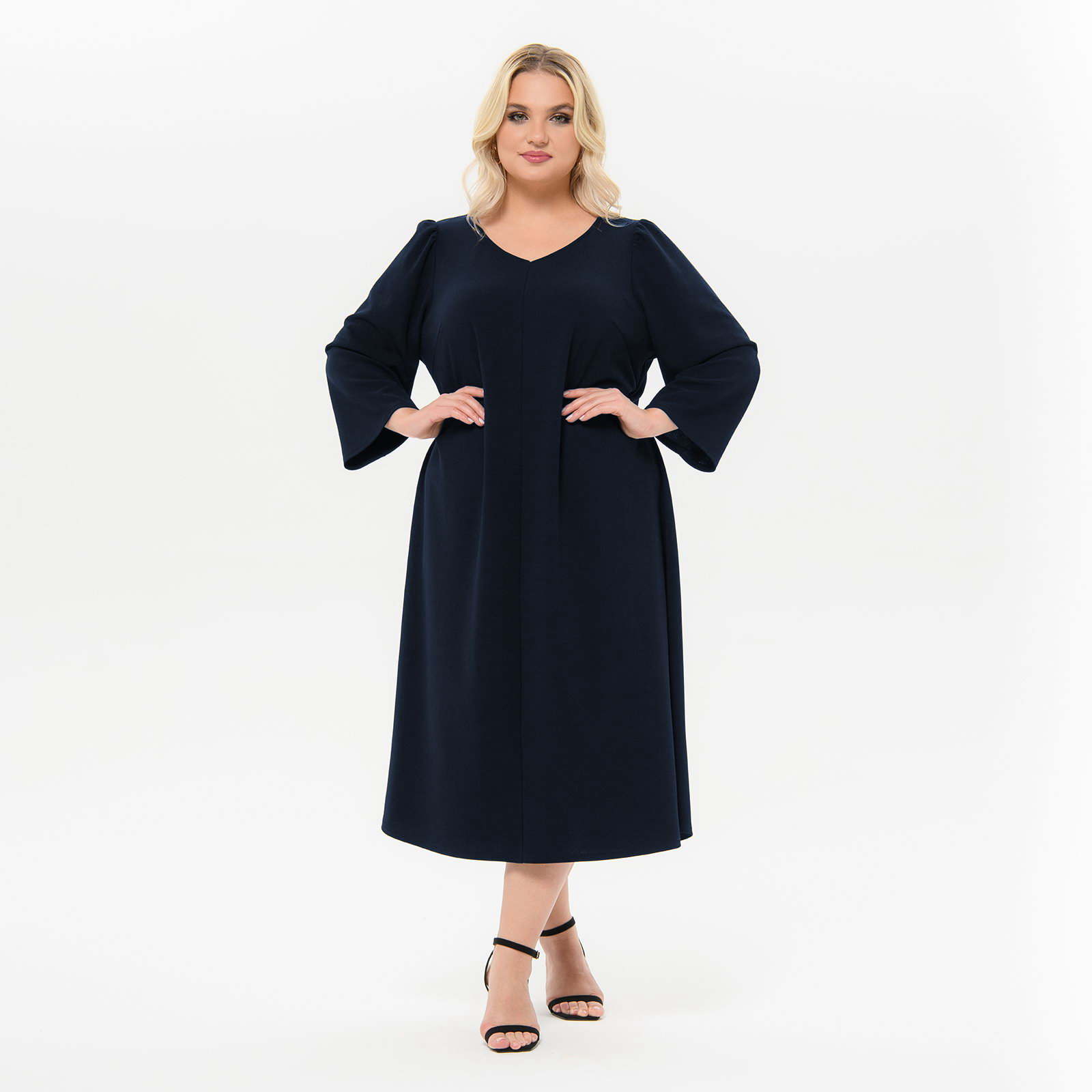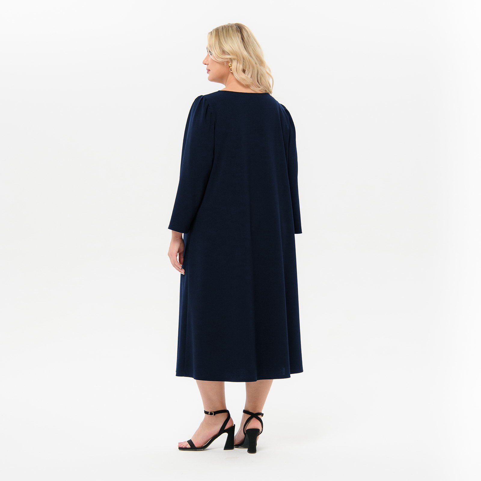 Темно-синий Платье А-силуэта, свободное, из плательного крепа с эластаном.