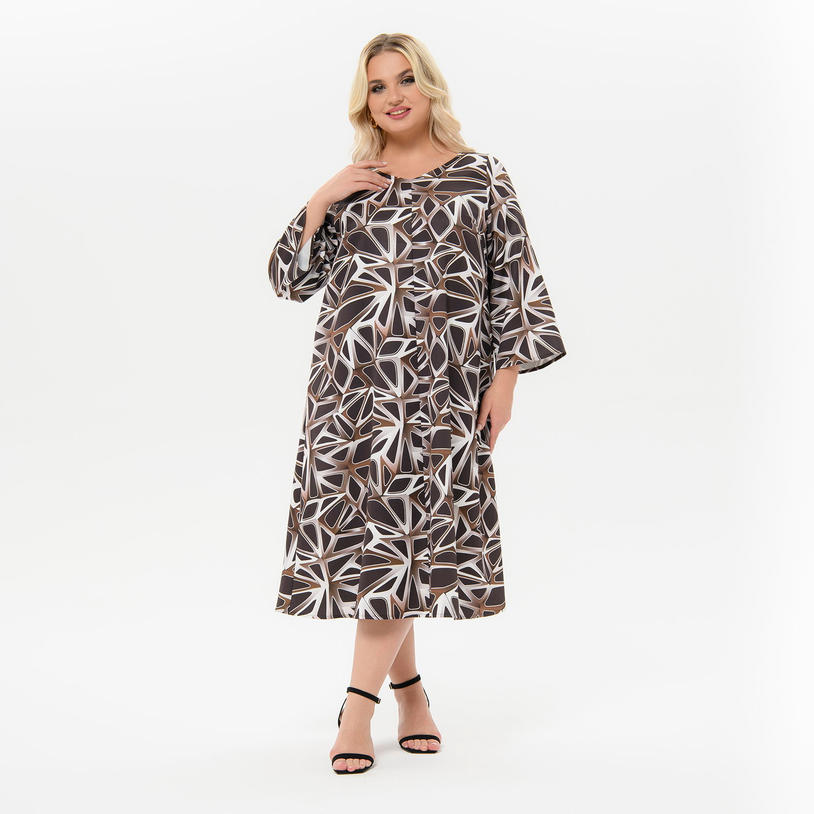Платье А-силуэта, из плательной ткани, принт "абстракция шоколадно-кофейная"