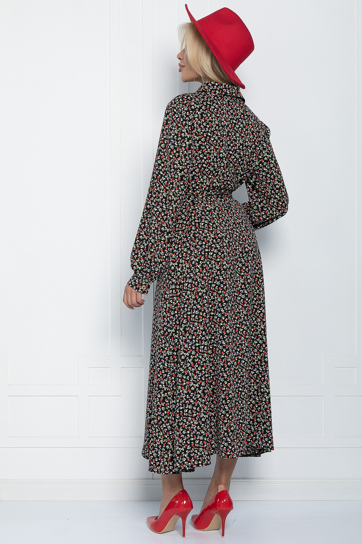 Легкое и женственное платье с цветочным принтом. В таком длинном платье вы будете изящной и неповторимой. Расклешенный крой делает образ еще более романтическим. В верхней части пуговицы до талии. Рукав длинный, втачной, по низу манжет с пуговицей. Пояс из основной ткани входит в комплект.