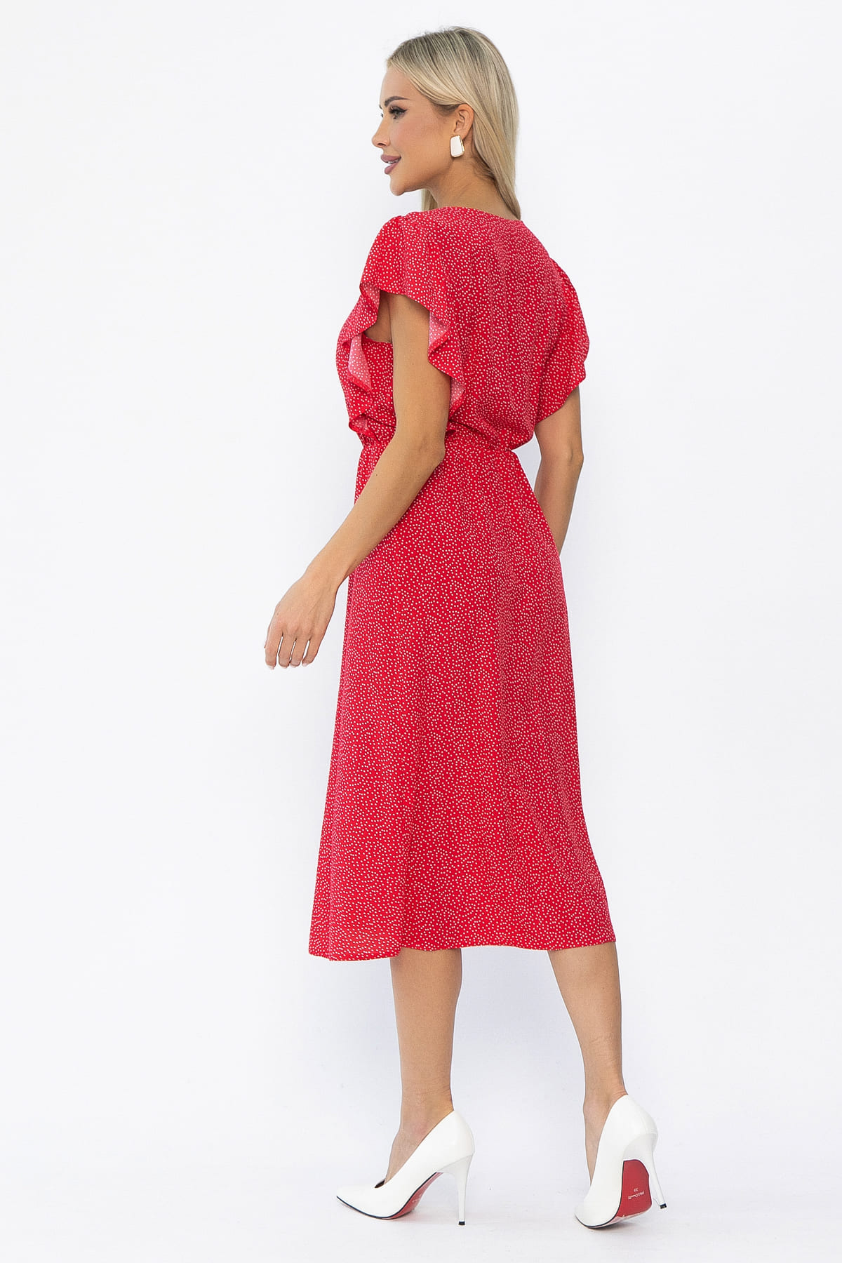 Очаровательное платье в красном цвете идеально подойдет для летних дней и теплых вечеров. Его приталенный крой и женственные детали подчеркивают индивидуальность, создавая ощущение комфорта. V-образный вырез акцентирует внимание на шее, а рукава-крылышки добавляют образу легкости и романтики. Резинка по талии подчеркивает фигуру. Юбка А-силуэта создает женственный и изящный силуэт. Это универсальное платье, которое подчеркнет вашу уникальность и добавит элегантности в любой образ.